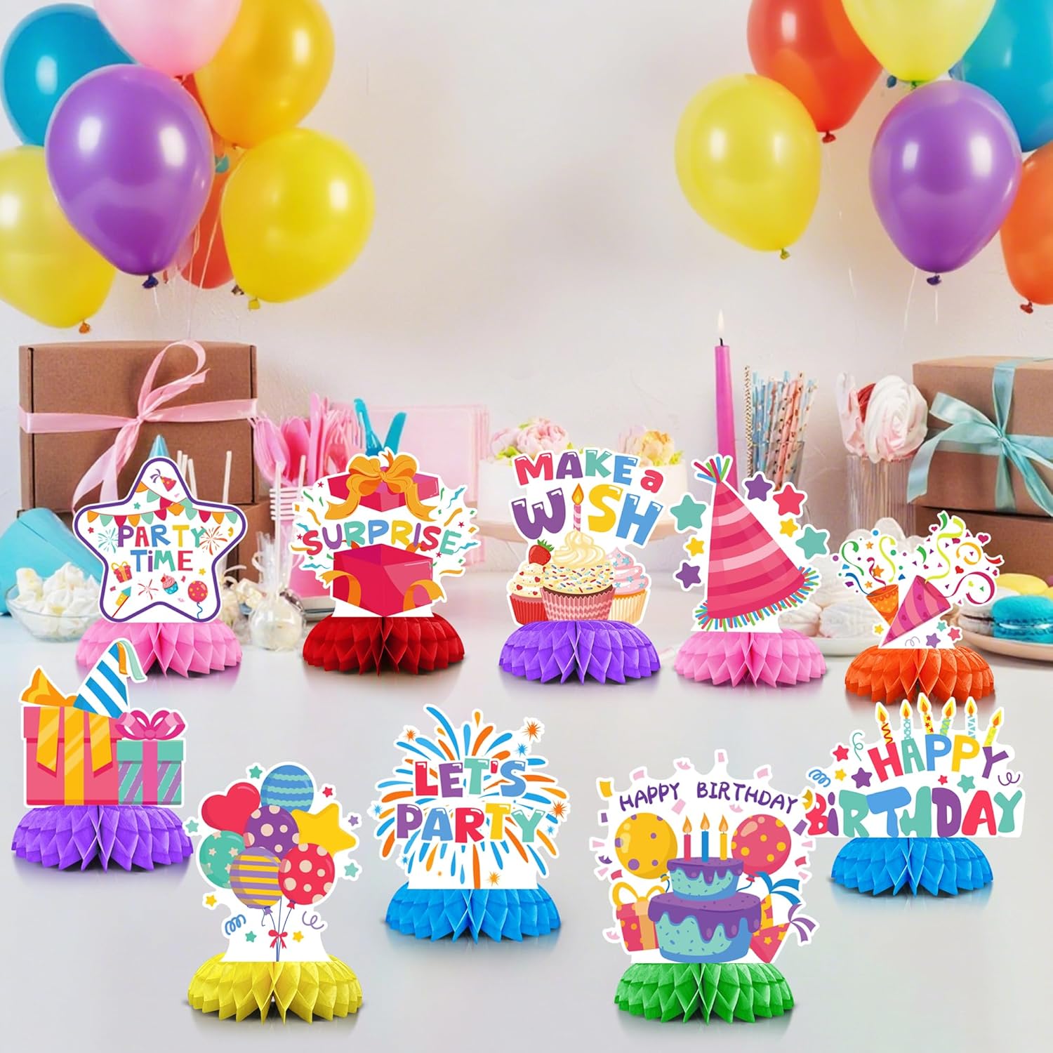 Package Includes: You will get 10 pieces of colorful happy birthday table decorations. Elevate your celebration with our 10pcs birthday party supplies, featuring colorful honeycomb centerpieces that serve as delightful birthday party decorations for kids. These vibrant happy birthday table decor items are perfect for creating a cheerful atmosphere at any birthday celebration