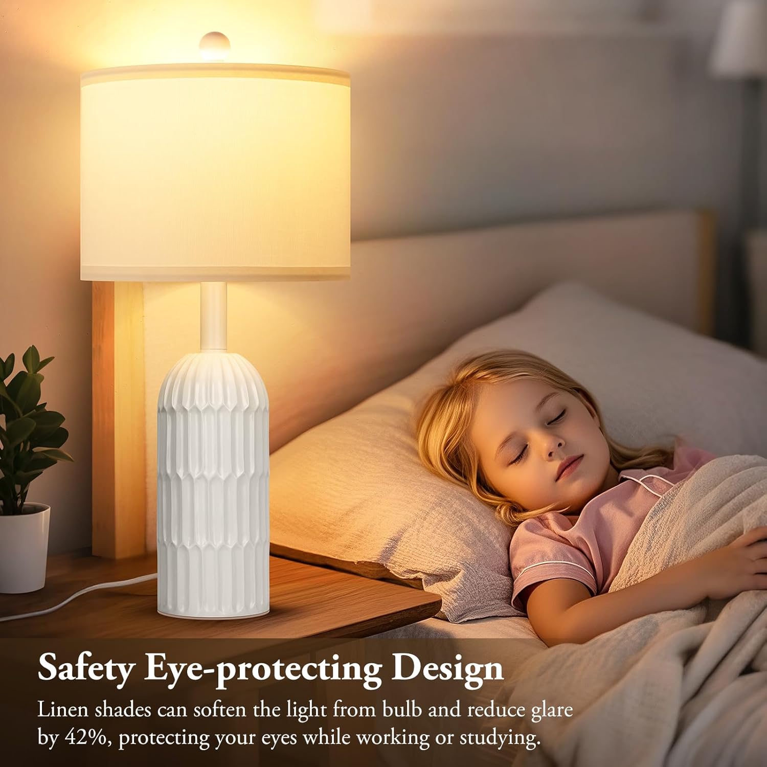 Eye Protecting and Wider Lighting: Our premium linen shade of bedside lamps works like a gentle filter, transforming ordinary light into eye-Friendly Light. The organic material filters blue light peaks without distorting color accuracy and eliminating harsh shadows while reducing glare by 42%. Whether you’re unwinding with a novel at bedtime, helping with homework at the kitchen table, or enjoying quiet morning moments with your coffee, the set of 2 table lamps wraps you in perfect visibility without any glare or dark spots.