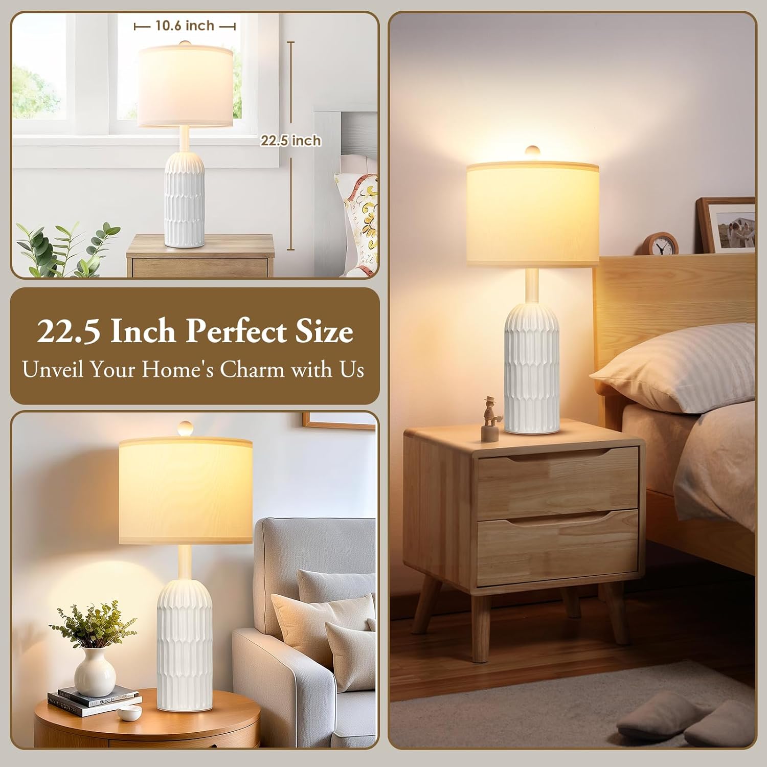 Elegant, Versatile, and Perfectly Sized – A Beautiful Addition to Our Home!I couldn’t be more pleased with this set of 22.5″ white modern table lamps. They’re everything I hoped for and more. Stylish, functional, and surprisingly high-quality for the price. Whether you’re going for modern farmhouse, rustic chic, or vintage elegance, these lamps blend beautifully into a variety of home styles.🛋️ Perfect for Living Room or BedroomI purchased this set to refresh our bedroom nightstands, and they instantly elevated the space. The lamps are just the right height, tall enough to provide great light for reading in bed without feeling bulky or overwhelming. I liked them so much, I ended up moving one into the living room side table and it looks just as stunning there.🎨 Beautiful Finish & DesignThe distressed white base has a rustic, vintage charm that’s subtle yet stylish. It doesn’t feel cheap or overdone, it has a clean, matte texture that gives off a well-crafted, farmhouse-modern aesthetic. The white linen shades are simple and elegant, diffusing light softly and evenly, creating a warm and cozy glow in the room.💡 Great Lighting & AmbianceThe lamps give off just the right amount of light for reading, relaxing, or watching TV. I added warm LED bulbs, and the combination with the linen shade creates a gentle, ambient light that’s perfect for evening use. It’s bright enough without being harsh. Exactly what I was looking for!🔧 Easy Assembly & Well PackagedThey arrived very well packaged, with no damage or issues. Assembly was quick and easy, it took me less than 10 minutes to put both lamps together. The quality control was spot on: everything aligned properly, and both lamps sat evenly on our tables without any wobbling.🎯 Final Thoughts:These lamps are a fantastic value for a set of two. They look far more expensive than they are and work beautifully in both traditional and modern spaces. If you’re looking for bedside or accent lamps that are stylish, well-made, and give off great light. These are it.