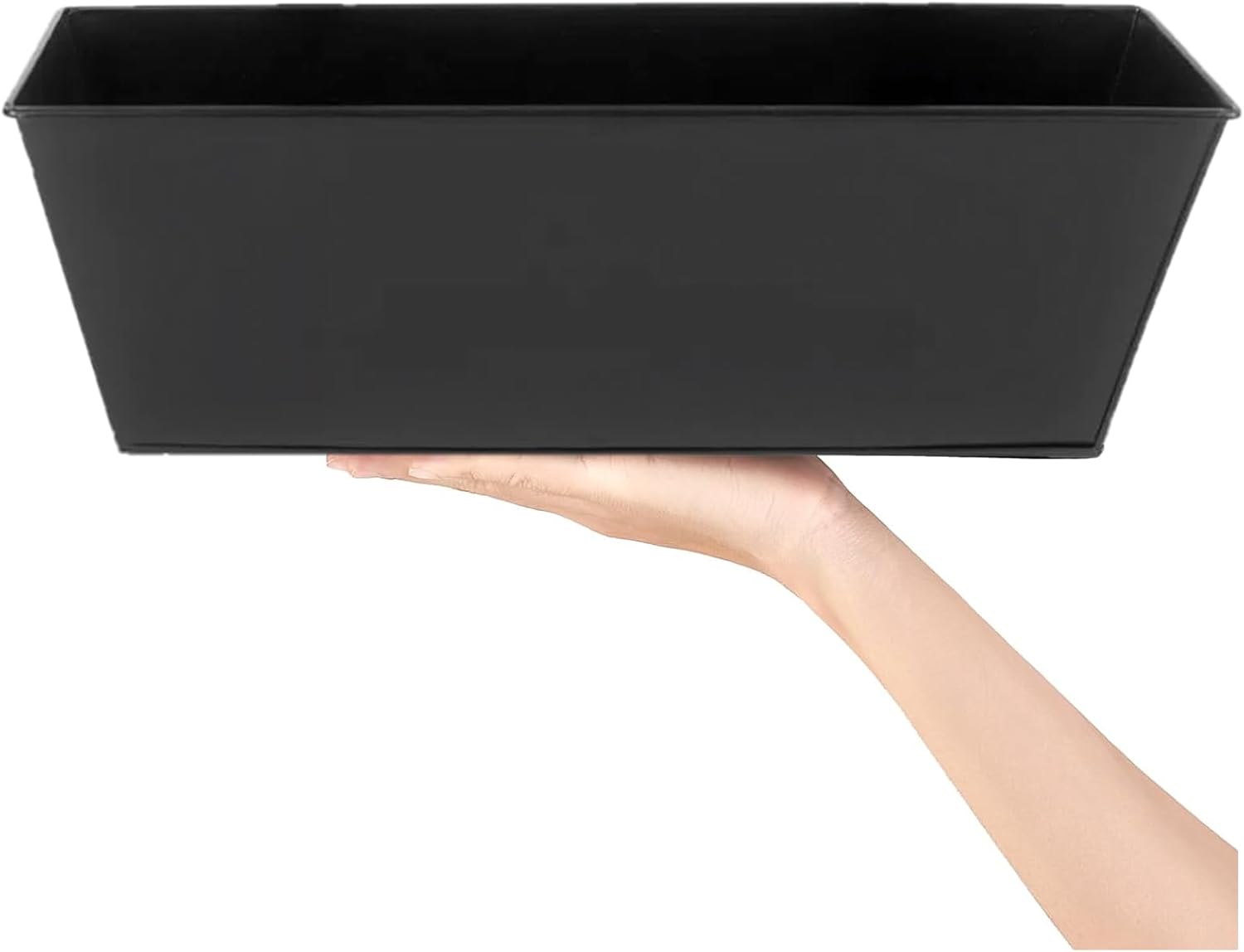 These planters are a nice size, holding three typical 3-inch nursery pots/ Do have a minimum of 8 quarts of potting mix to add when you plant them, as you will need it, and likely a little more than that. I planted Creeping Jenny, Impatiens, and Caladiums in all three. The hooks are a little narrow for my balcony railing, but the bonus is that they fit quite tightly. The hooks do stickup an inch o so because they aren’t an exact fit, so I would suggest to the manufacturer that they make both a rounded hook like mine, AND a squared hook for people to choose from. My railing is flat on top and not round, and decks will also likely have a square railing top edge The hooks simply slip into an attached slot on the back side, which is convenient for storage or packing to move, as they can be removed and placed inside the pan. They have ample drainage holes, and I suggest lining the pots with a double layer of large coffee filters to keep the soil from escaping during watering. You will need three for the length, and I used six just to be sure. They came stacked with paper in between, and the paint was not scratched or marred in any way. I do recommend them. I only marked them down one star because of the hooks being a bit small and rounded rather than squared. I would not get smaller ones; yu want them to make an impact. My plants are still very young and will be showy when matured more.