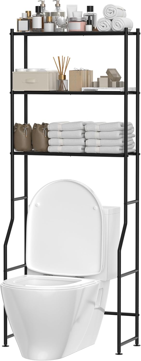 Space saving – Bathroom storage rack has 3 tiers of open shelves with a total height of 64 inches and each tier is 23.6 inches wide, providing enough space for all your requirements. Please make sure the Max width fits your toilet before purchasing!