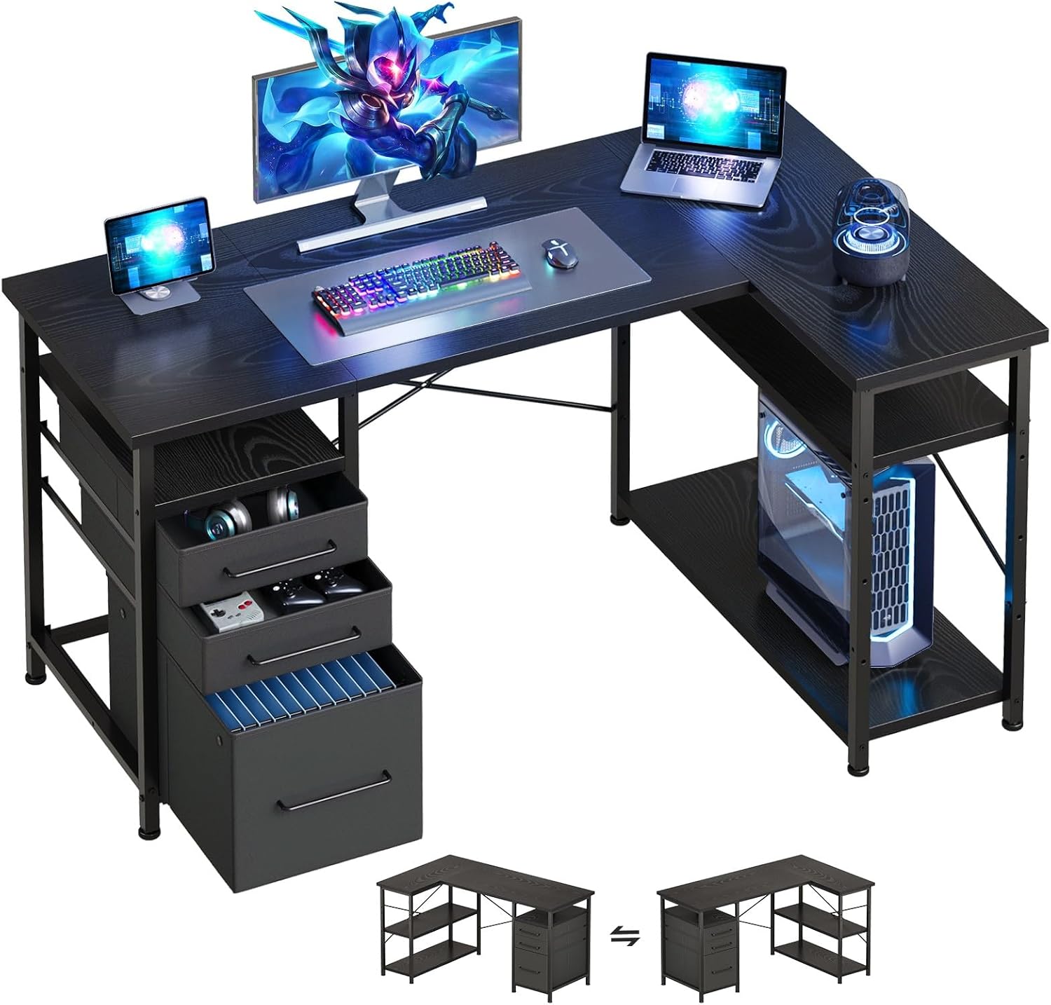 【Enrich Storage Space】Compared with traditional desks, this computer desk adds 3 drawers and 2-tier open shelves for storage . The bottom drawer can accommodate file folders. The extra storage space can more effectively organize the work space in the home or office.