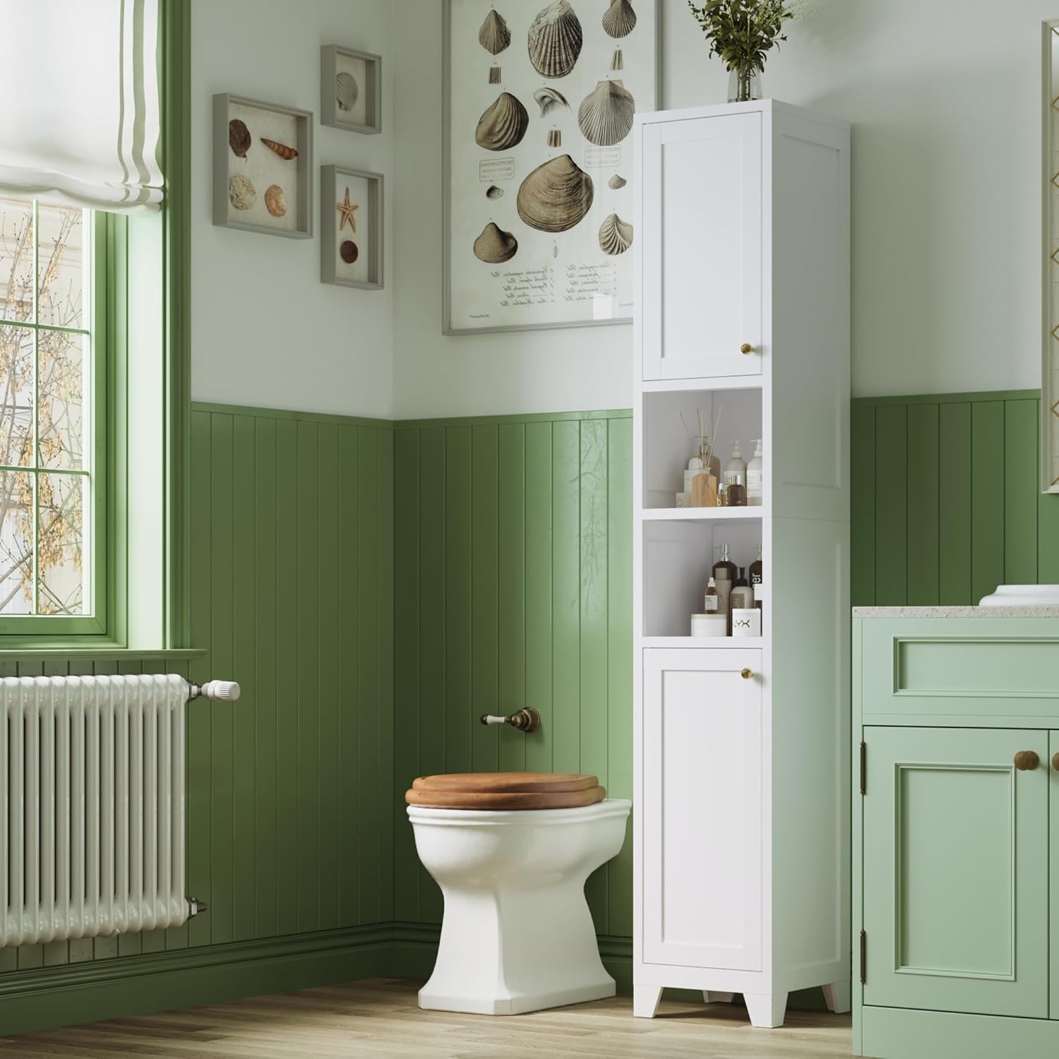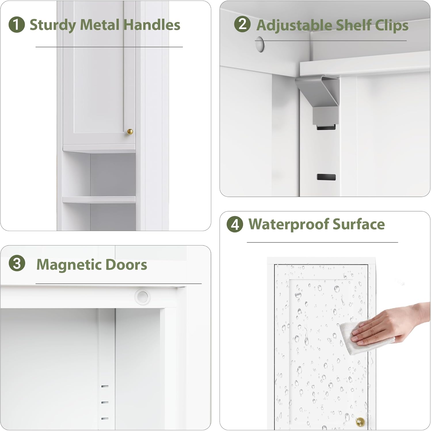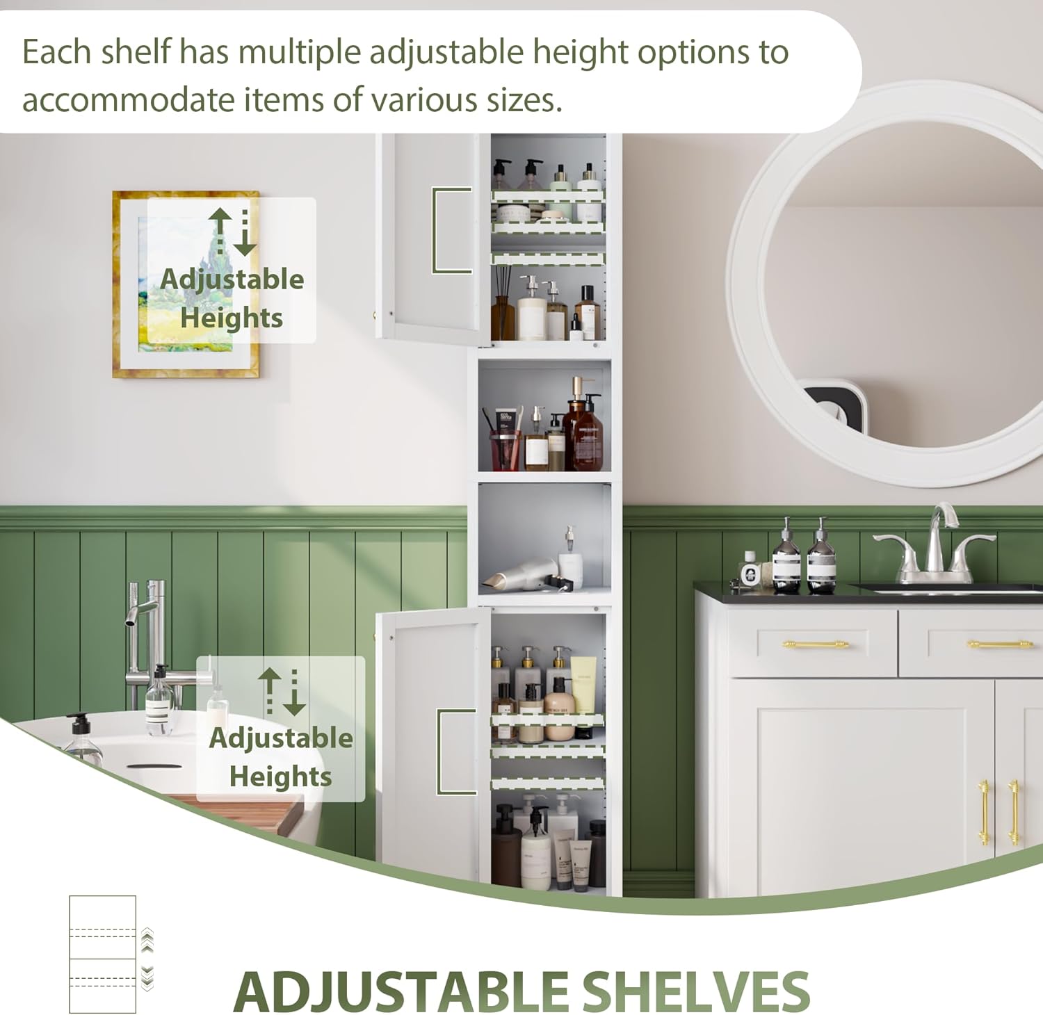 8 reviews for 67”H Narrow Metal Bathroom Storage Cabinet with 2 Adjustable Shelves & Doors, Tall Skinny Bathroom Corner Floor Cabinet, Slim Storage Organizer for Small Spaces, Living Room, Kitchen