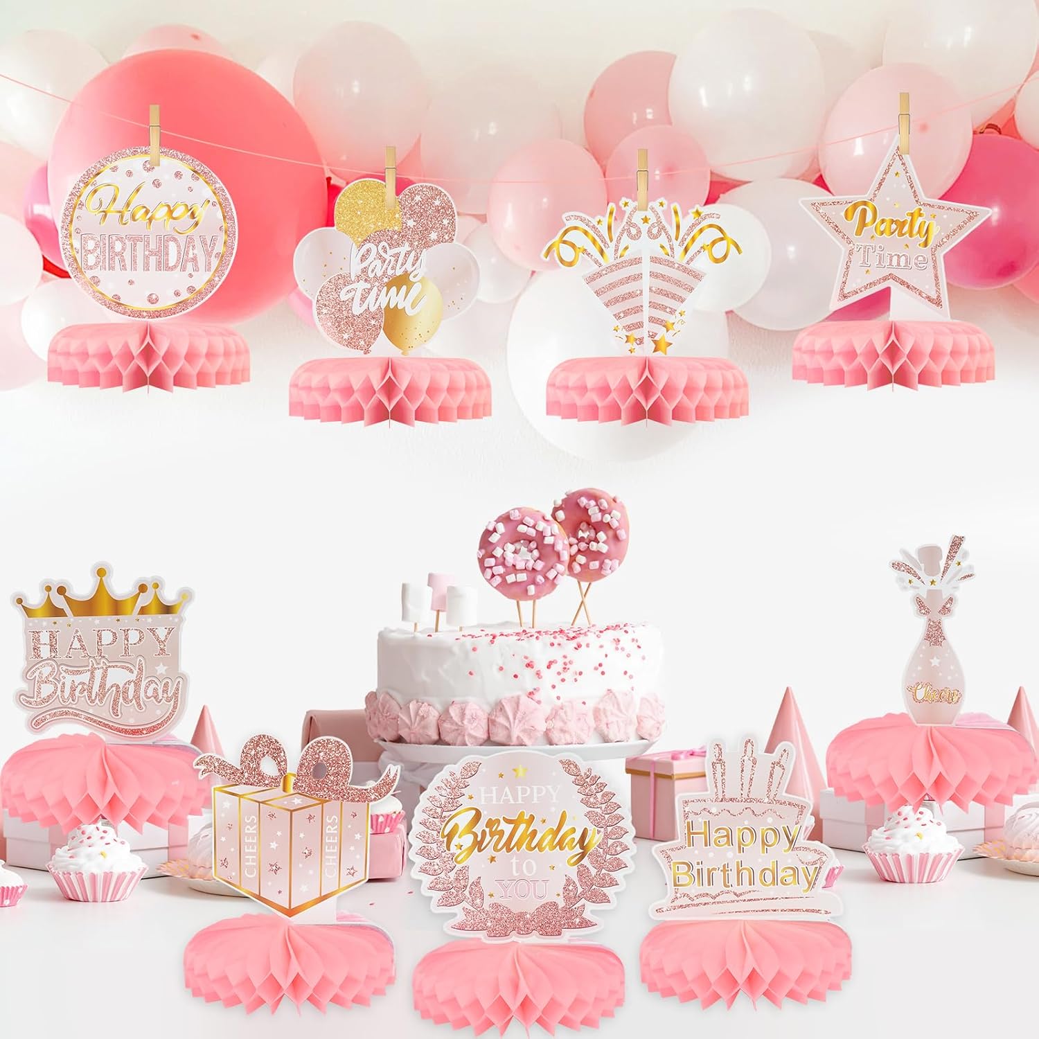 8 reviews for 9PCS Birthday Table Decorations,Pink Rose Gold Honeycomb Center Pieces for Table Decorations,Happy Birthday Party Decor for Women Girl,Party Supplies for Birthday Baby Shower