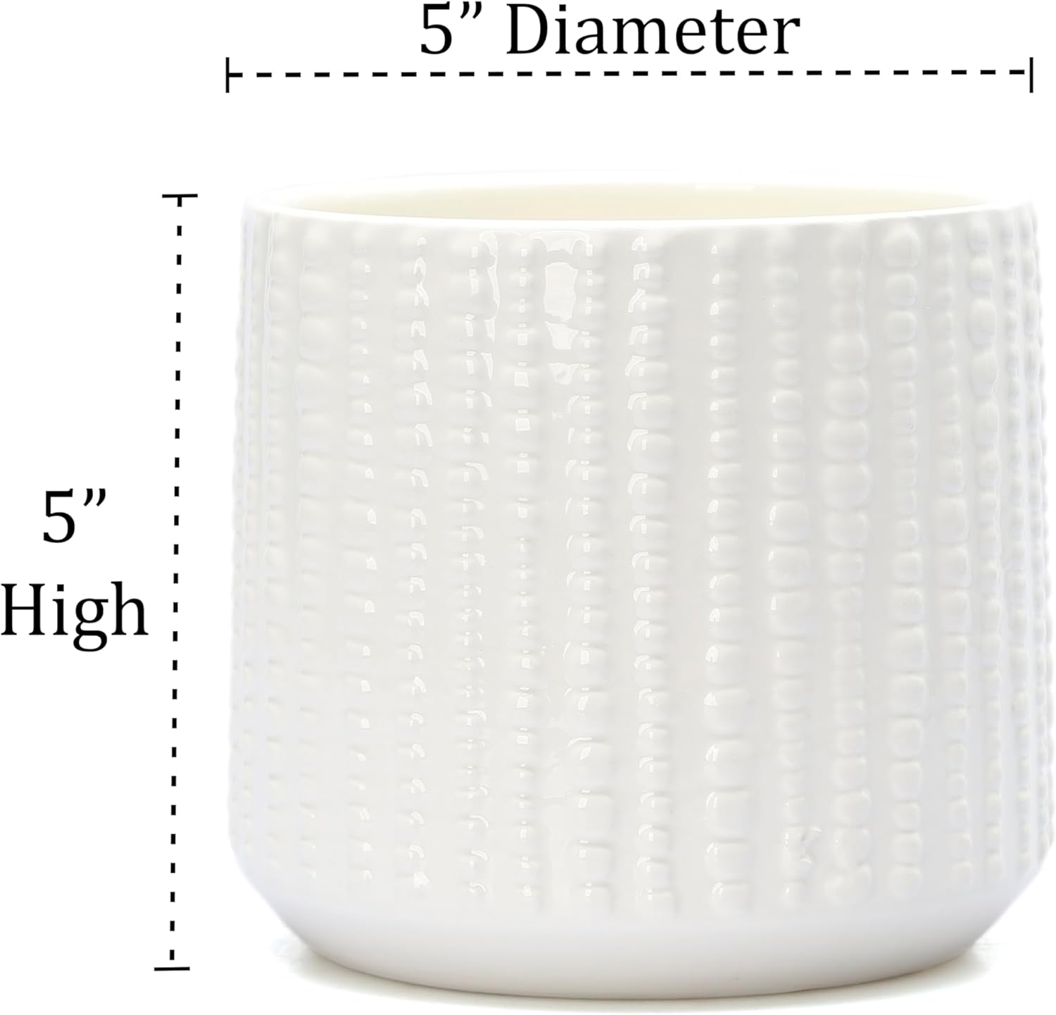 The ceramic feels solid and high-quality — not lightweight or cheap.The textured white finish looks modern and elegant, blending perfectly with any décor style.Even though I’m using it with a faux plant, the real drainage hole gives it an authentic look (and would be great for real plants too).Perfect 5-inch size for shelves, desks, or kitchen counters.