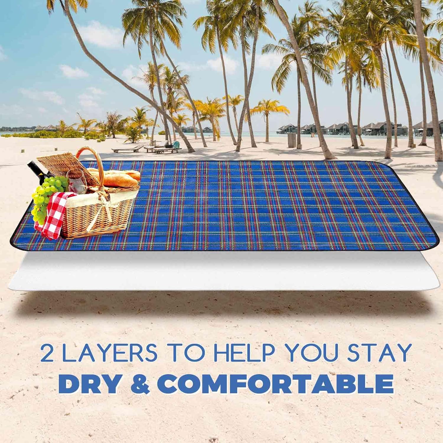 WATERPROOF & SANDFREE: Our beach blanket is made of thickened polyester fiber & sturdy PVC backing, 100% water-proof & quick drying, won’t rip/tear, keep you dry on wet grass or beach. All the sides & joints are triply stitched for long term everyday use