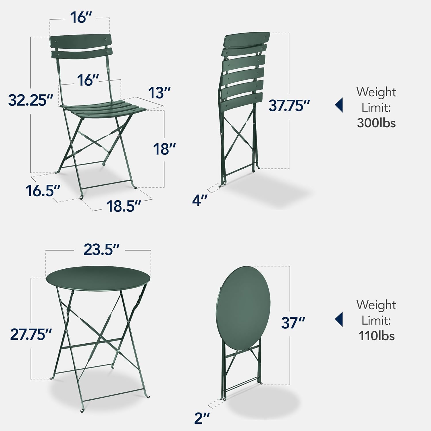8 reviews for Best Choice Products 3-Piece Bistro Set, Space Saving Folding Design, Solid Steel, Outdoor Patio Furniture Set w/ 2 Chairs, Bistro Table – Dark Green