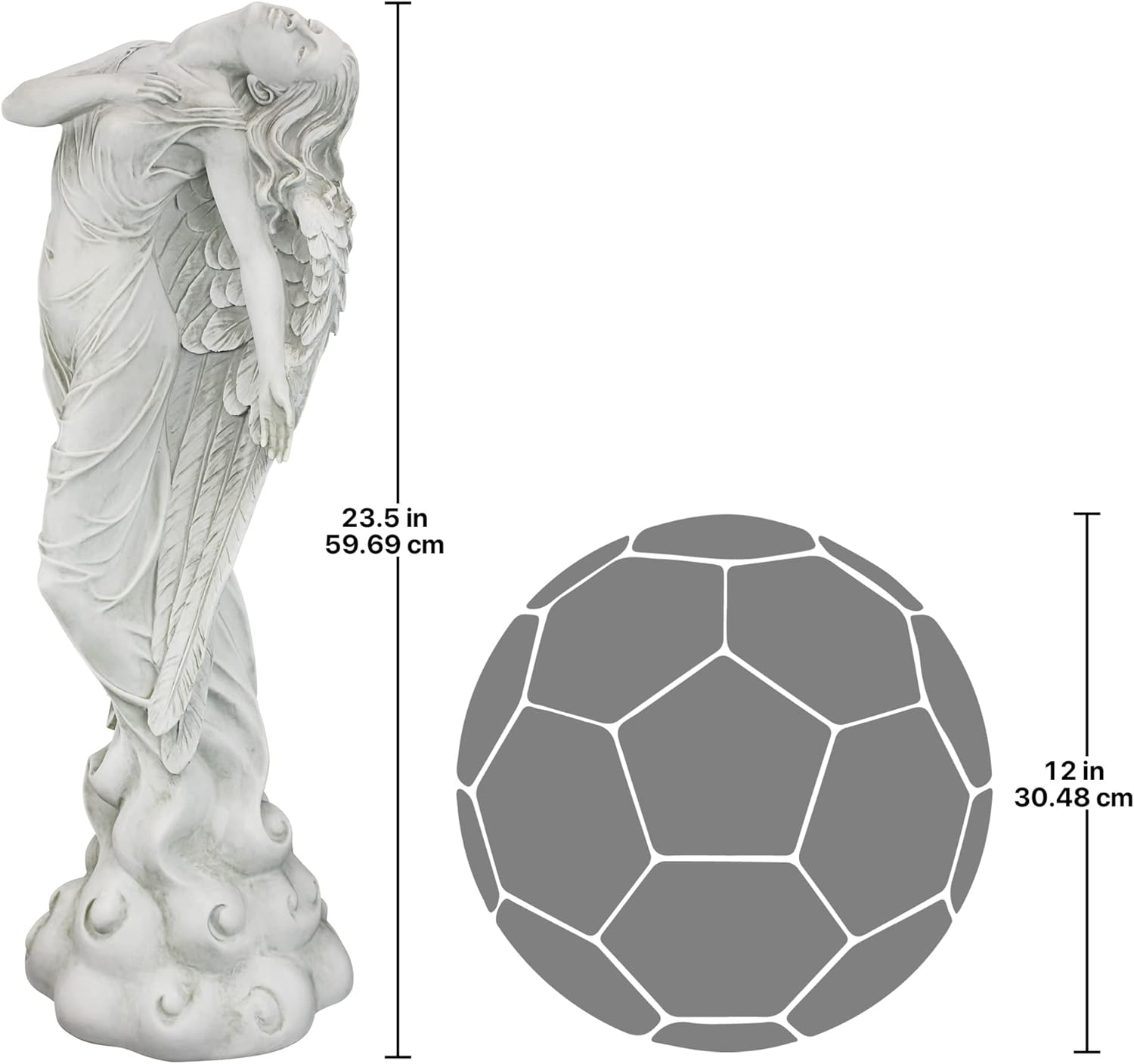 Our medium Ascending Angel statue measures 8″Wx8″Dx23″H. and weighs 6 lbs. perfect for flowerbed display or a spiritual sanctuary in your home