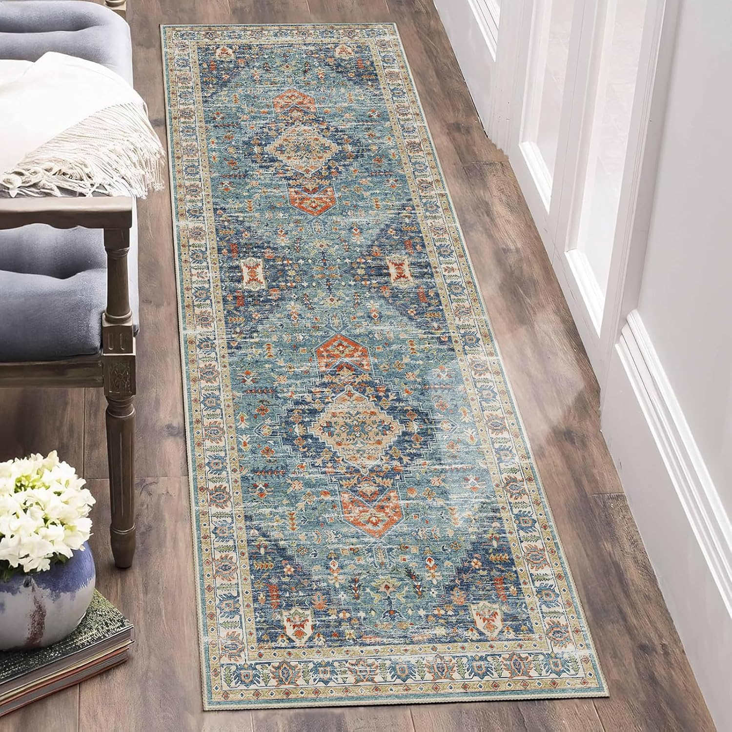 🌿 Kid and Pet Friendly: This runner rug is crafted from premium materials that are safe, making it ideal for homes with children and pets. Its soft texture provides a warm and safe play area for your little ones and furry friends.
