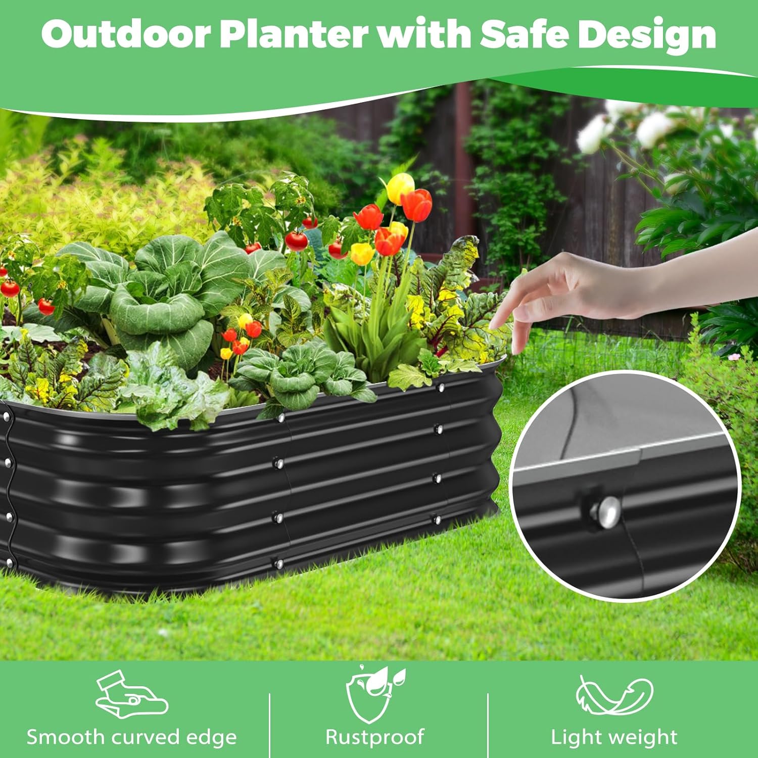 Heavy-Duty Steel Construction for Long-Term Durability: Built with galvanized steel panels, this garden raised bed planter resists rust, corrosion, and weather damage. Ideal for all seasons, it retains structural integrity and won’t warp or rot like wood—perfect for long-term outdoor use