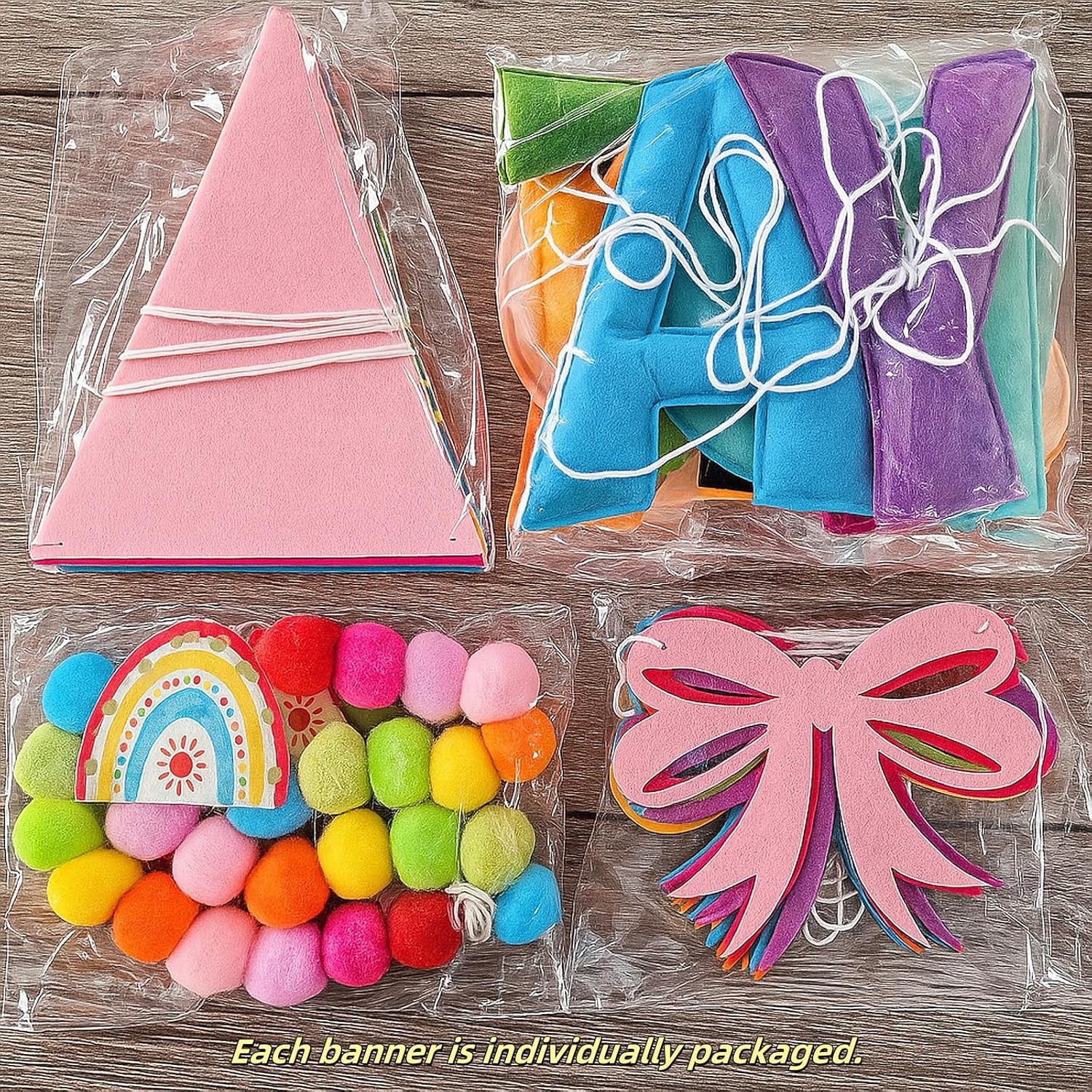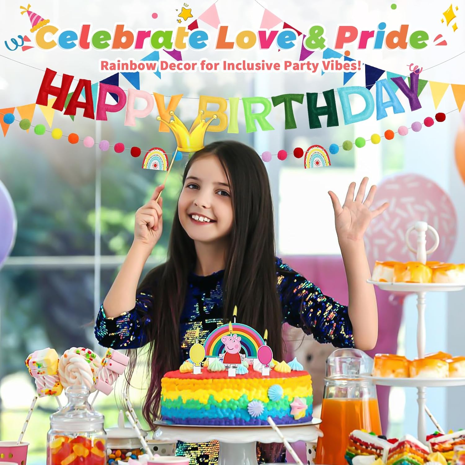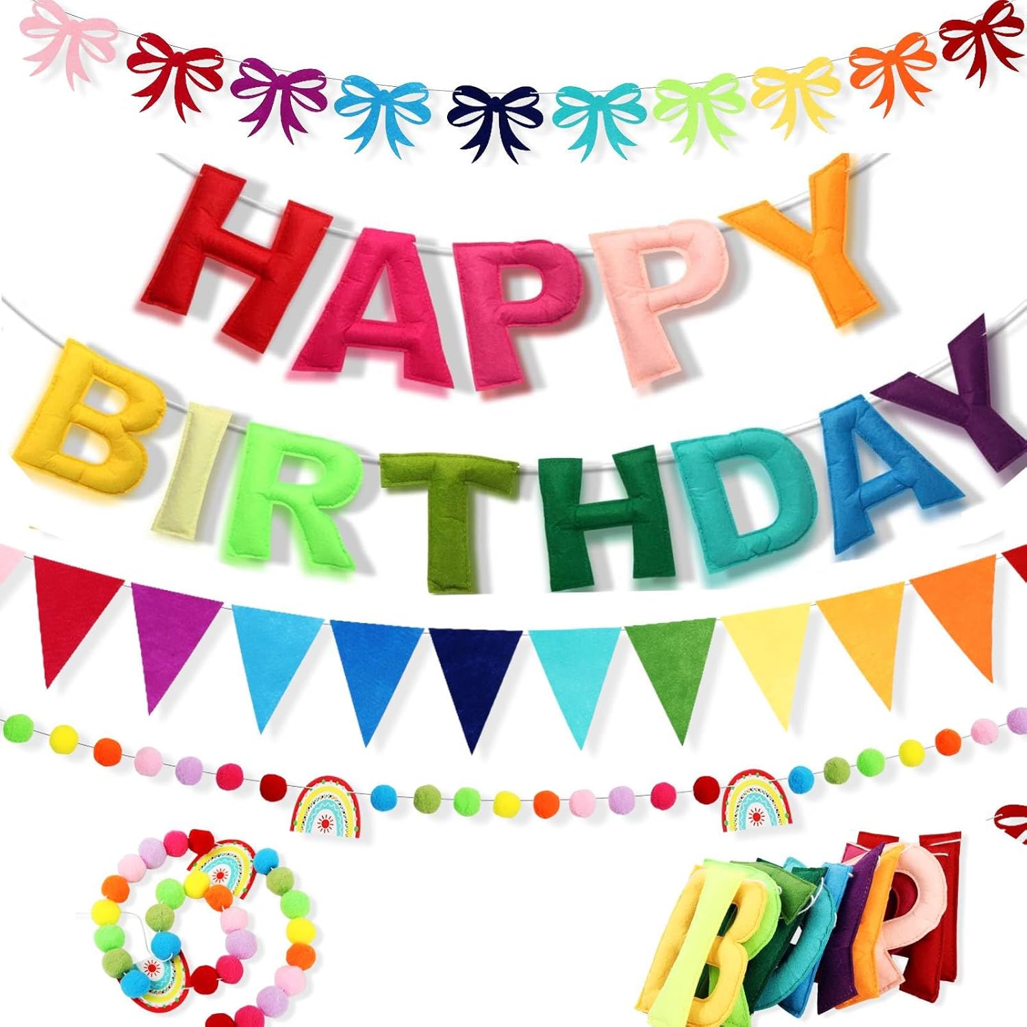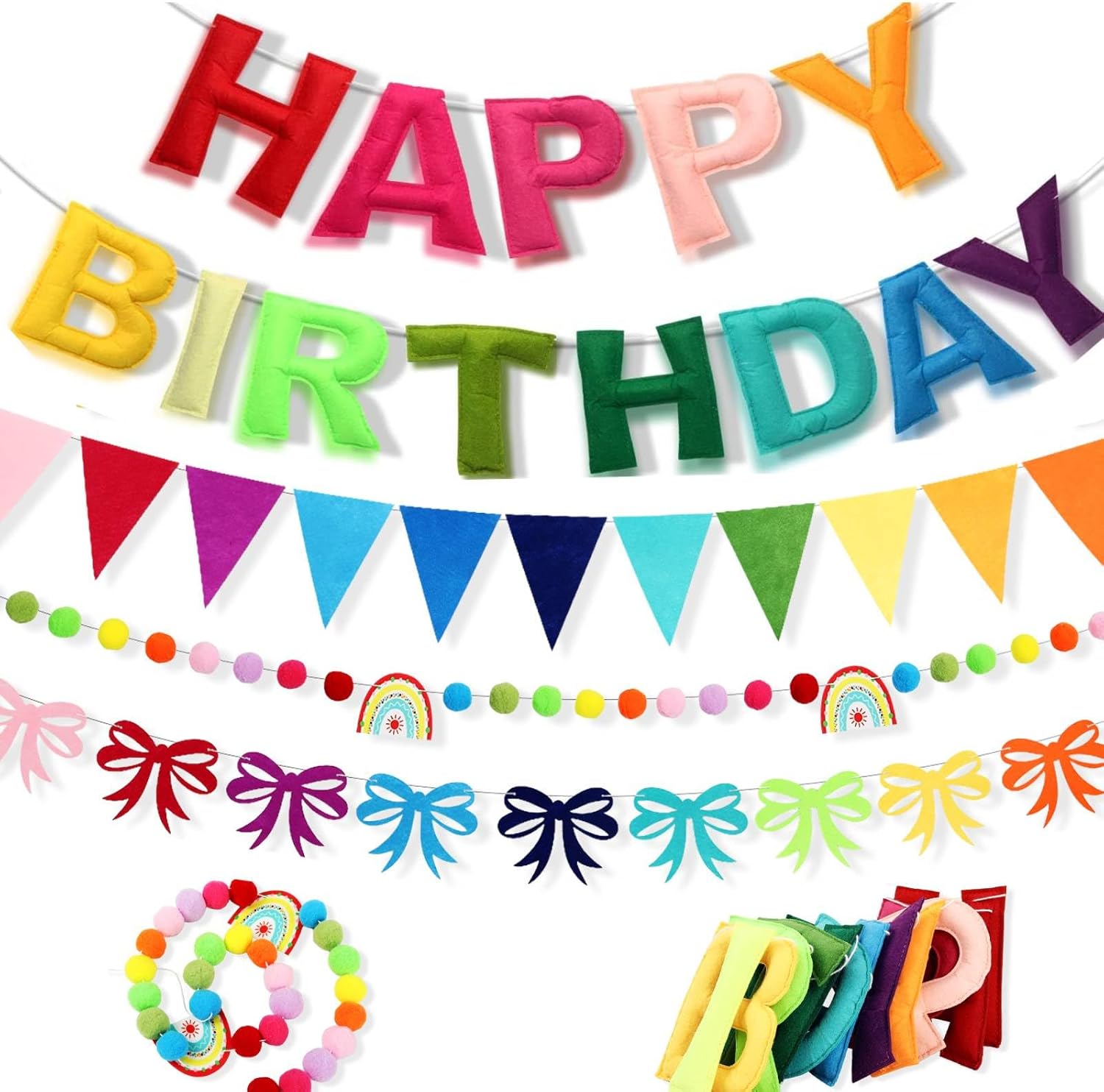 VIBRANT AND VERSATILE: Designed with colorful, eye-catching details, this birthday banner includes a stunning 3D rainbow “HAPPY BIRTHDAY” sign, a lively pompom garland, a festive felt bunting flag, and an elegant bow garland. It’s more than just a banner; it’s a versatile decoration that enhances any event, from birthdays to Pride Month, adding a cheerful touch to your decor.