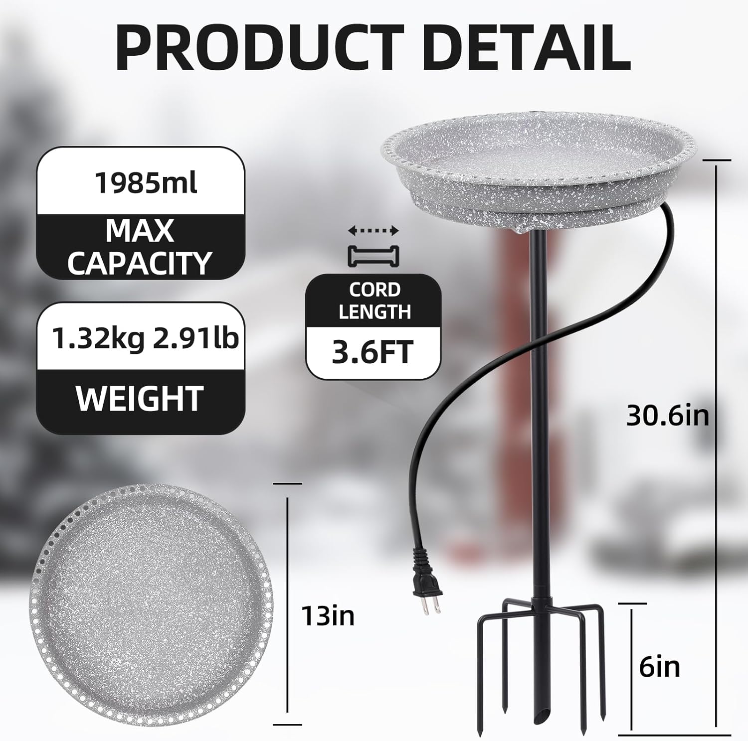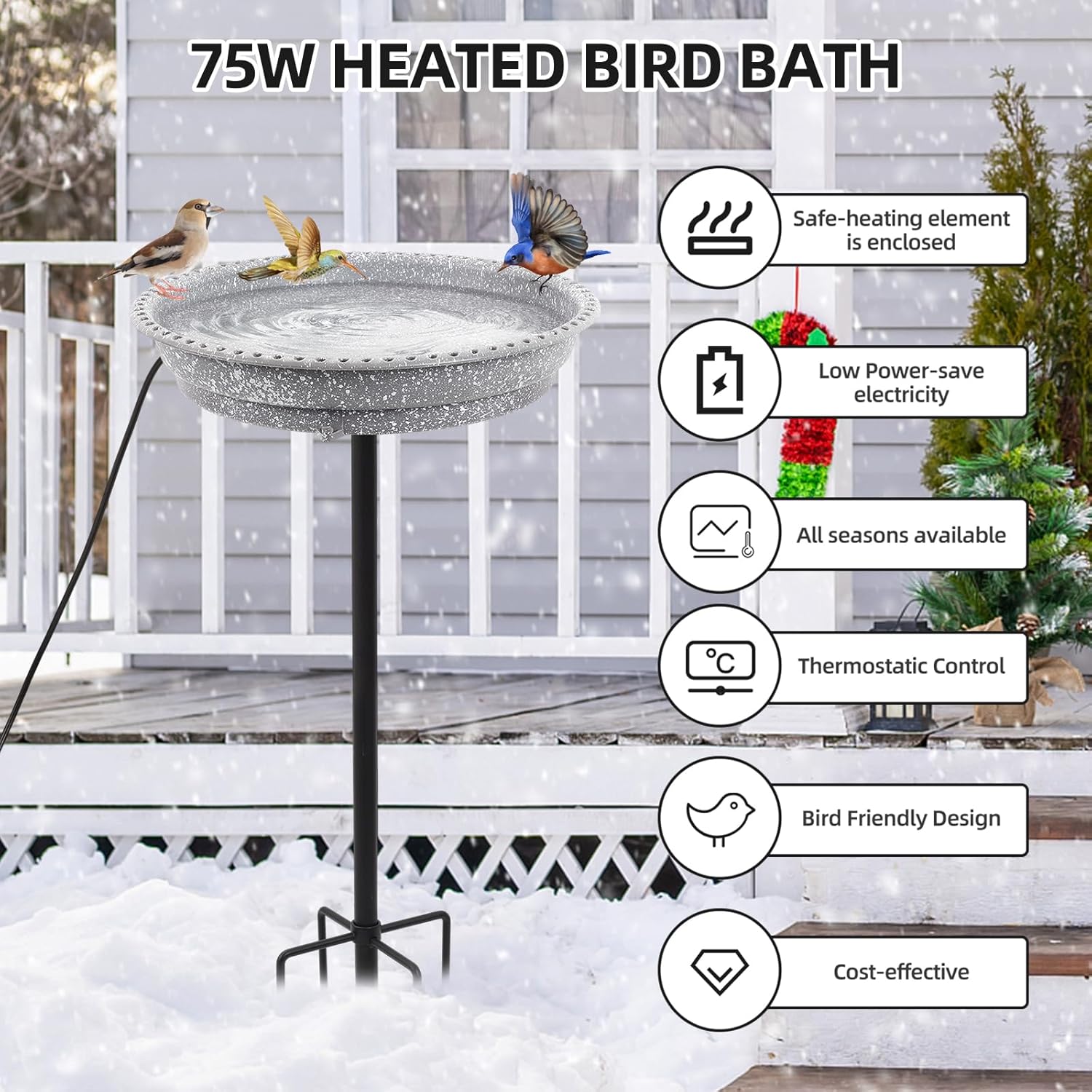 10 reviews for Heated Bird Bath for Outdoors for Winter, 75W Bird Bath Water Heater Bird Bath Deicer,Deep Bowl Thermostatic Control Weather Resistance Available with Stable Metal Pole for All Seasons(Grey)