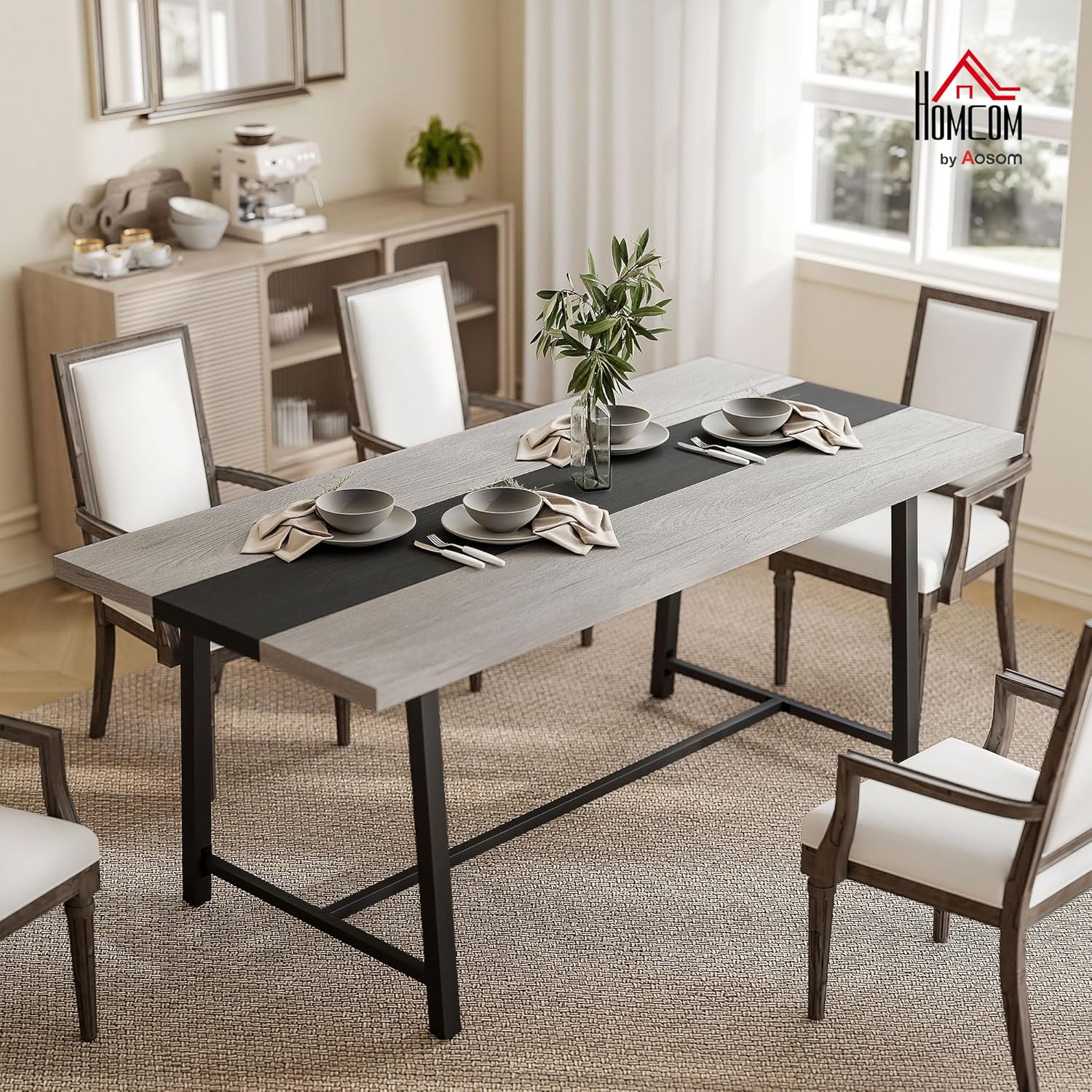 1 review for HOMCOM Industrial Dining Table for 8 People, 70.9″ Long Rectangular Kitchen Table with Large Tabletop and Steel Legs for Dining Room, Distressed Gray