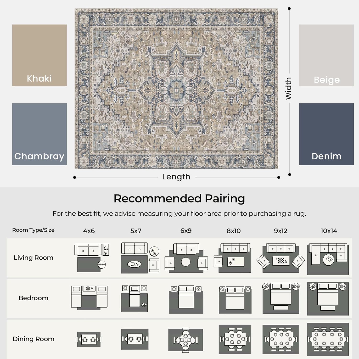 Built to Last and Stain-Resistant: The living room rug is crafted from stain-resistant fabric that repels spills and dirt, maintaining a fresh look with minimal upkeep, ideal for homes with kids, pets, or high-traffic areas