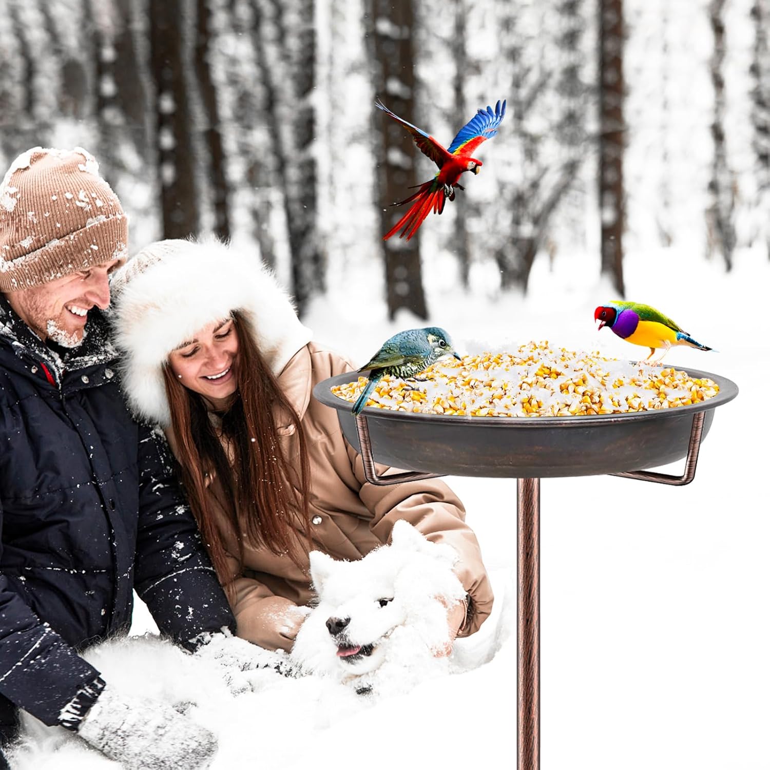 【Metal Bird Feeder Stand】 The whole bird bath and the pedestal are made of premium quality metal and and covered with safety coating, long-lasting and sturdy, can resist rain, water, and other weather, withstand strong sunlight and cold temperatures.