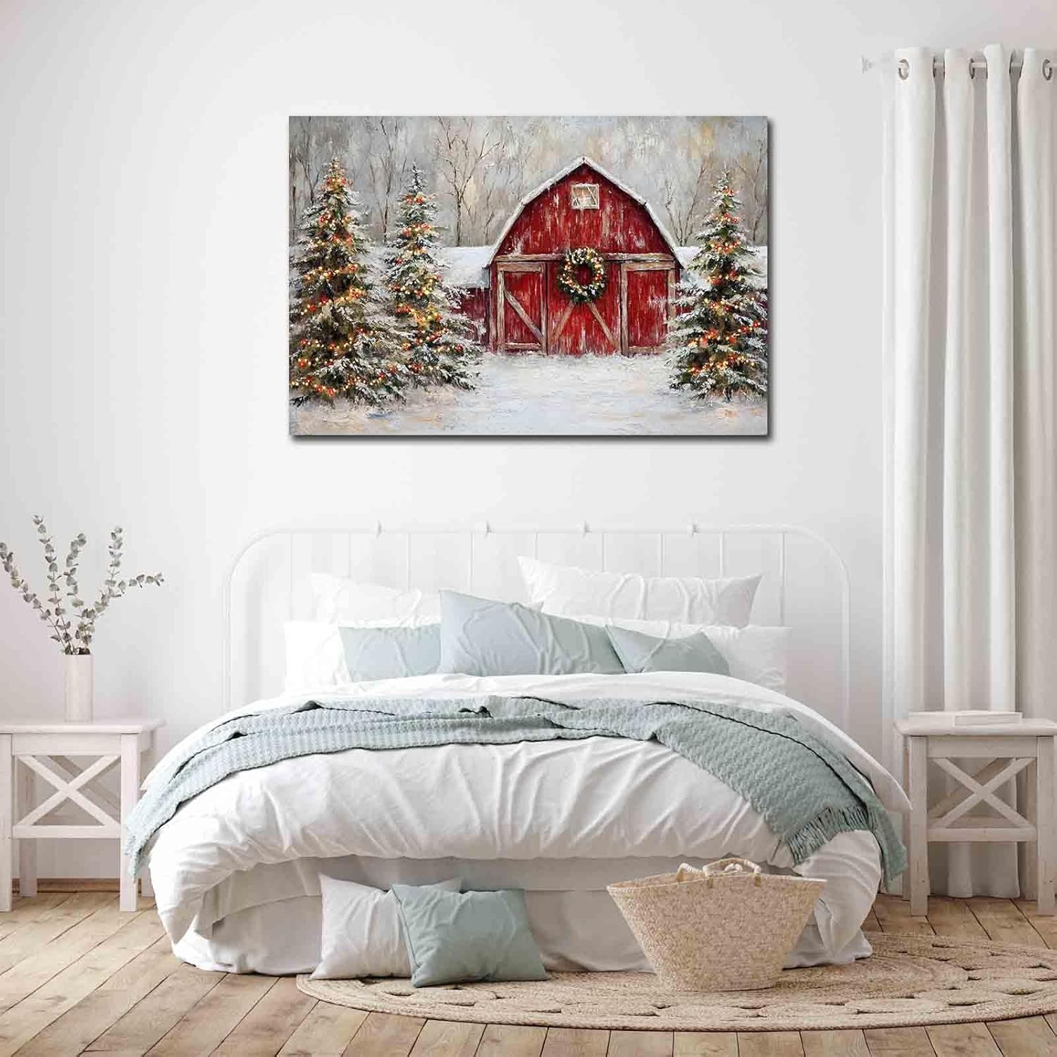 7 reviews for MNFGMH Christmas Farm Red Barn Rustic Holiday Decor Festive Wall Art Farmhouse Winter Landscape Painting Vintage Country Print Xmas Picture Print Gift Canvas Roll 16×24 inch