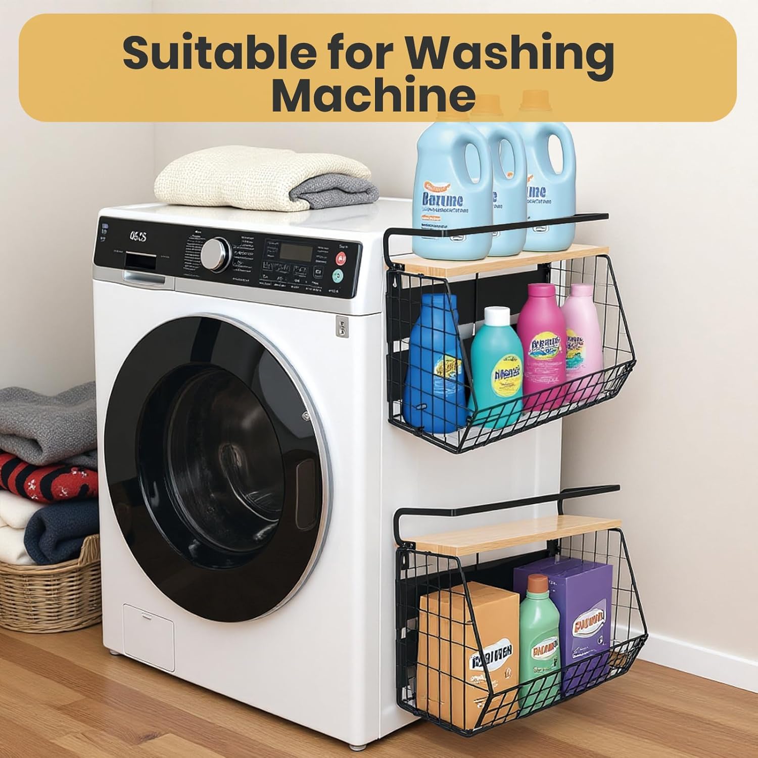 This magnetic fridge organizer adds flexible storage wherever you need it. In the kitchen, it’s perfect for garlic, onions, potatoes, or spices—helping preserve freshness and keep everything neatly organized. The bamboo top shelf holds spice jars, canned goods, or drinks. In the office, use it for coffee pods, tea bags, and snacks. In the laundry room, store detergent, dryer sheets, or small cleaners right where you need them.