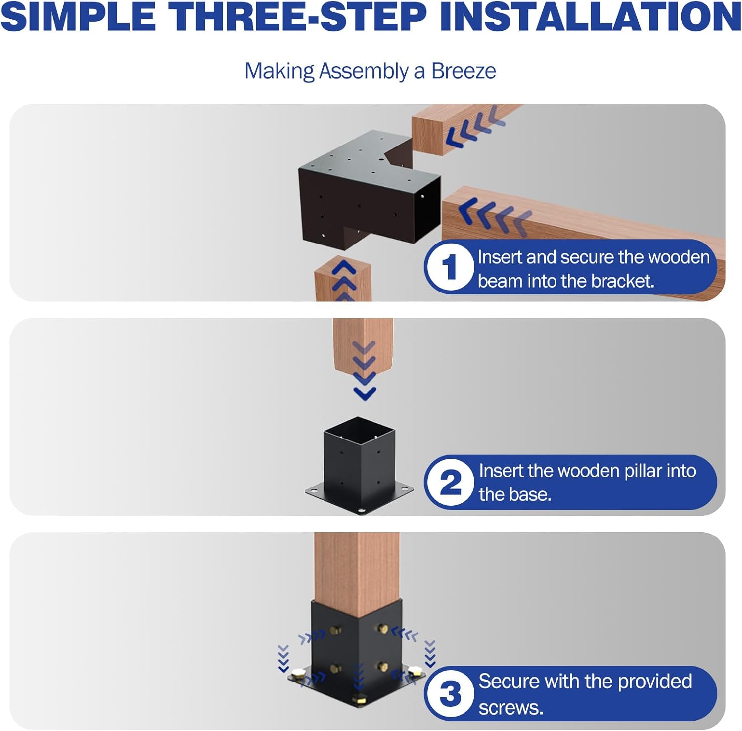 Universal Inner Size:This size applies to nominal standard 4″x 4″ wooden post (actual 3.5″x 3.5″ post on market); there is a slight error in the actual size, usually the error is about 1mm.Fits for most family outdoor pergola use .
