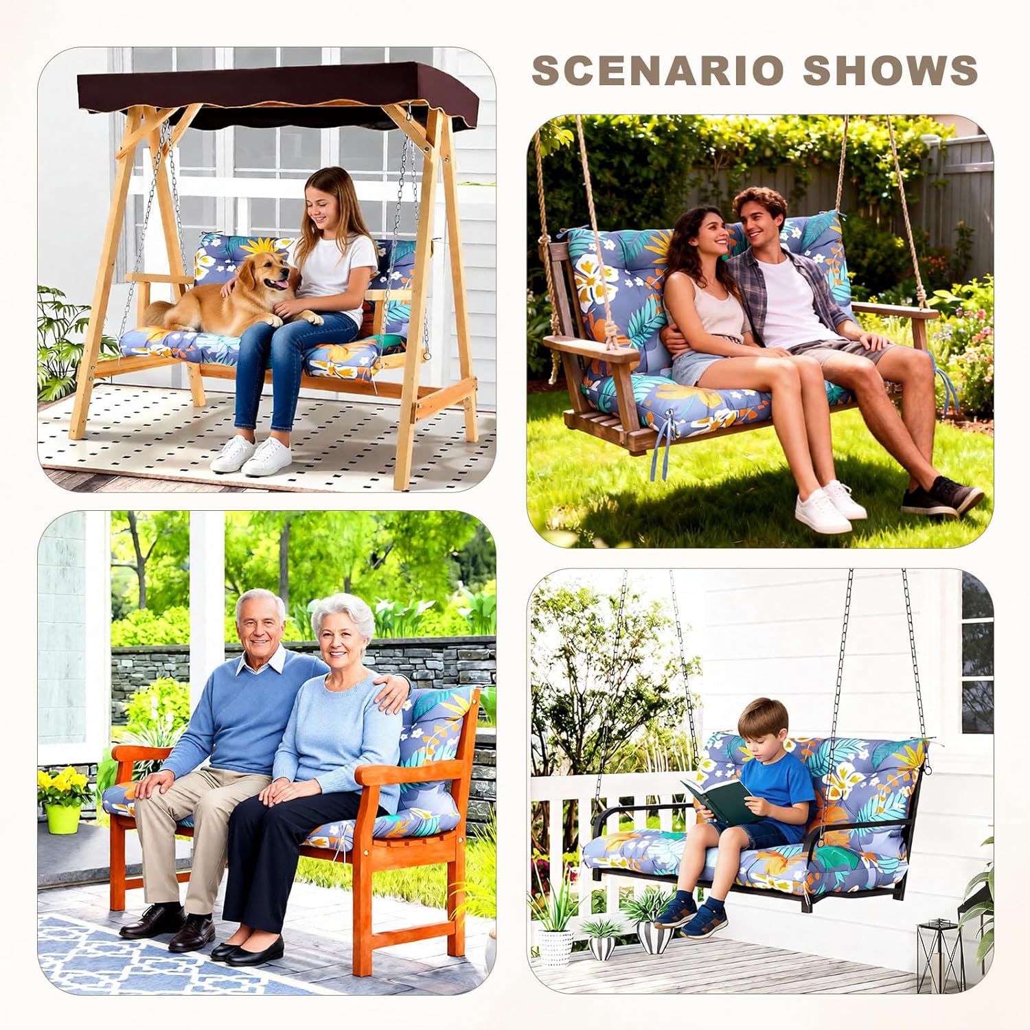 【All Weather Use】Outdoor swing cushions are waterproof and made of durable outdoor polyester fabric, ensuring they can withstand the elements such as water, sun, and stains. To maximize longevity, it is recommended to allow the cushions 24 hours for proper rebound after being vacuum compressed.