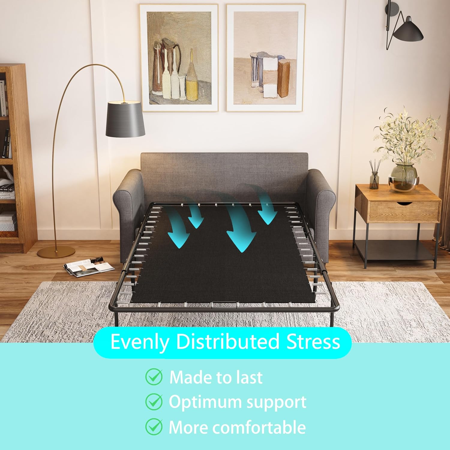 Durable Polyester Fabric and Sturdy Frame:This pull out couch features a soft and durable 100% polyester fabric, paired with a sturdy plywood frame, ensuring both comfort and long-lasting support for your daily use