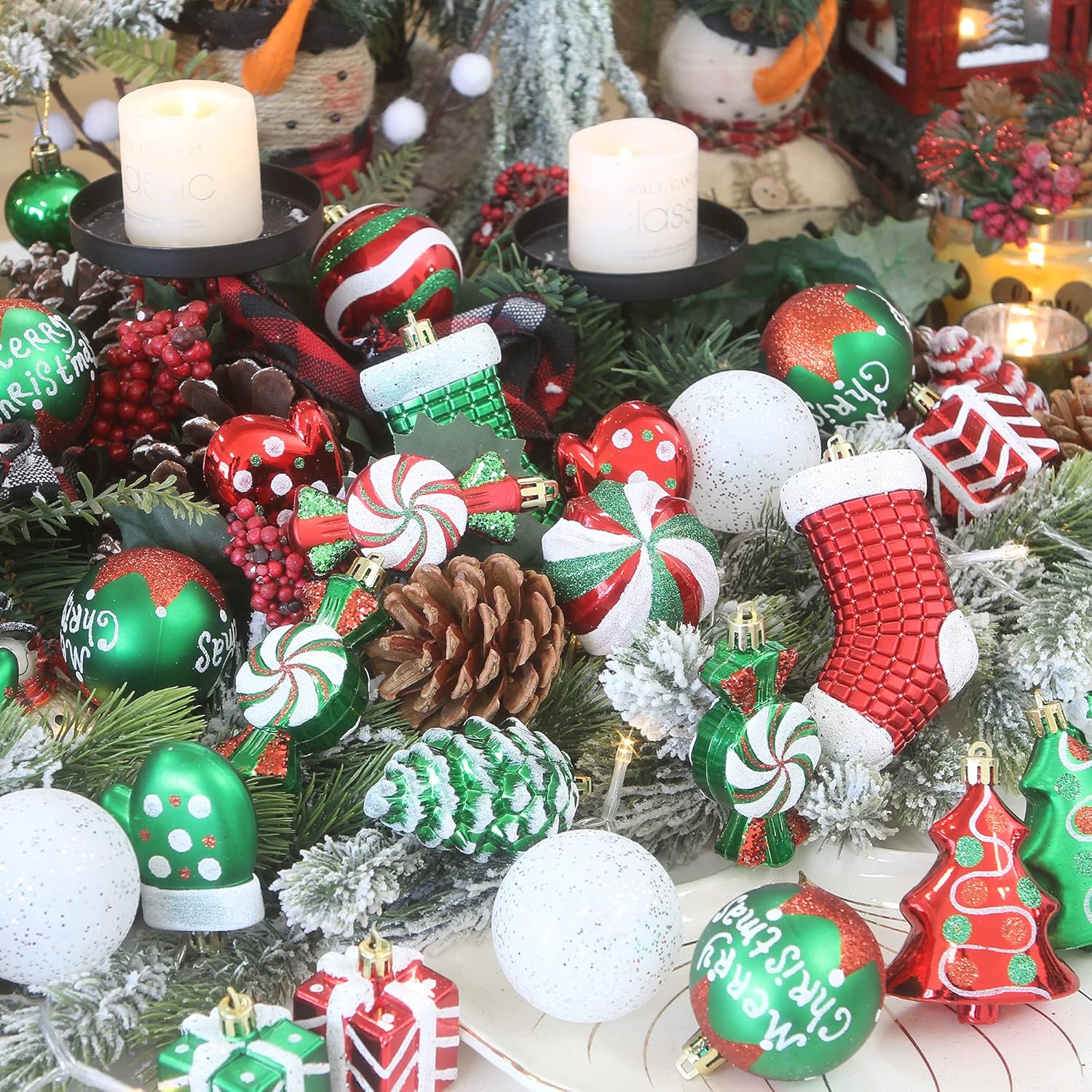 Our Christmas Ornaments come in many variations of style all with different looks and feel. We also included shapes other than the traditional ball, like hearts, snowman, socks.