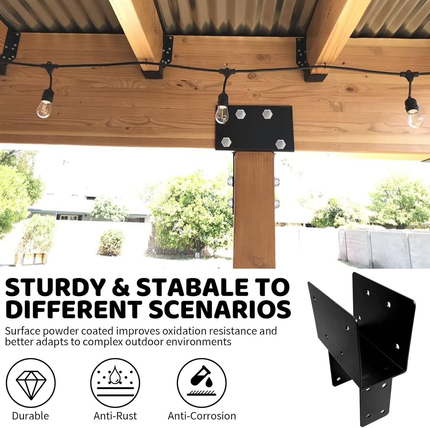 Easy to Install & Maintain—-We prepared a complete installation kit,the installation of the brackets do not require tedious steps,you just need to insert the wooden post into the bracket, and use the electric drill to drive in the screws to fix it.
