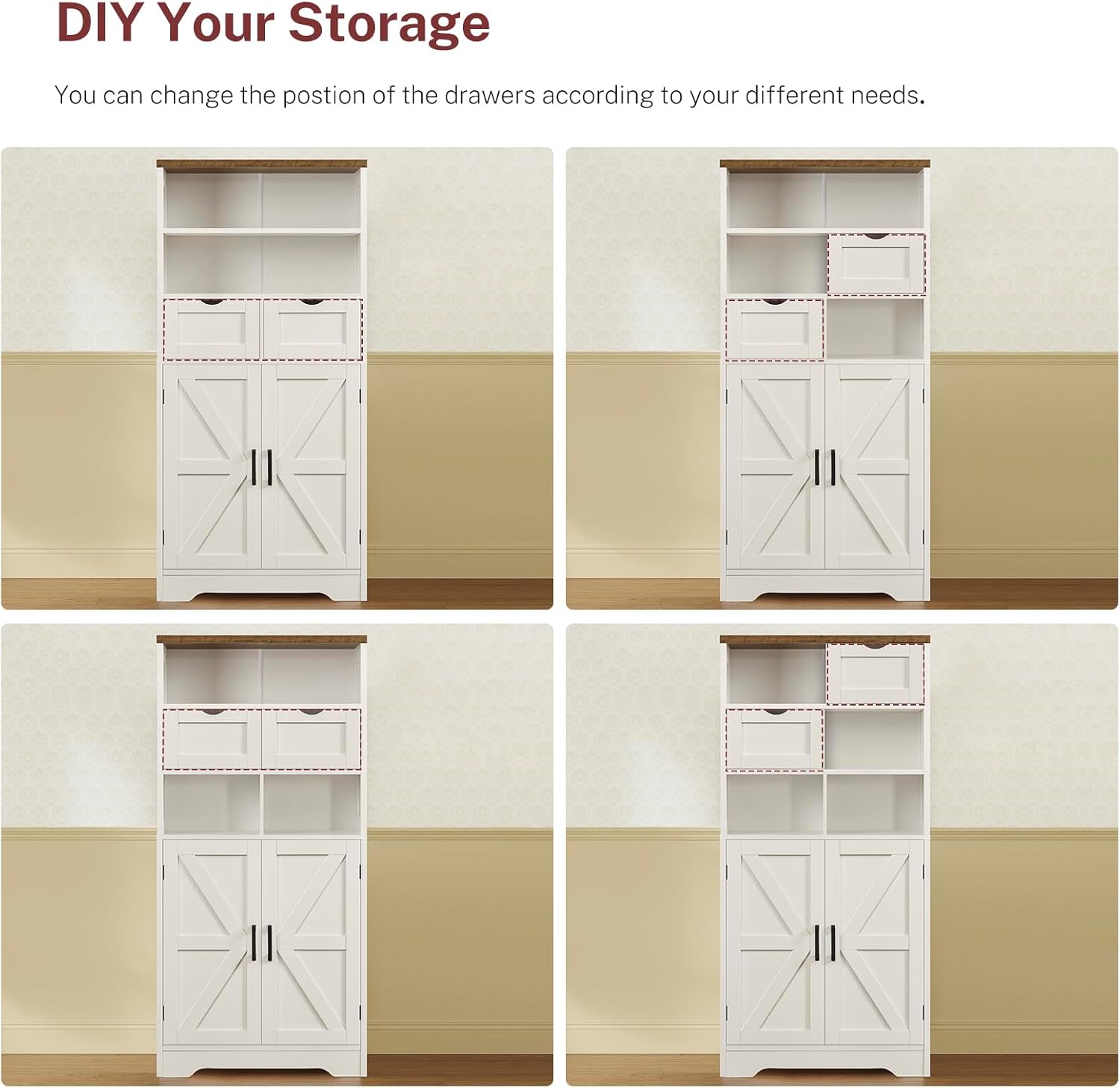 ⭐【Also Home Decro】 This kitchen cabinet features retro wood and barn doors, It will add a charming and farmhouse touch to any dining room or living area. No matter you use it as a storage cabinet, kitchen pantry, bathroom cabinet, bookcase or entryway cabinet, it will do the job perfectly and be a highlight for your home!