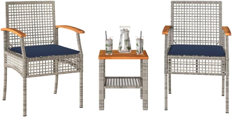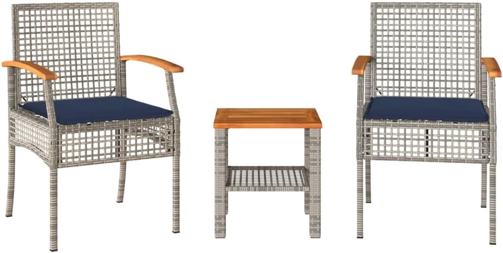 Be the first to review “vidaXL Patio Bistro Set – 3piece Outdoor Furniture – Gray Poly Rattan & Acacia Wood Chairs with Cushions – Ideal for Garden, Backyard, Balcony”