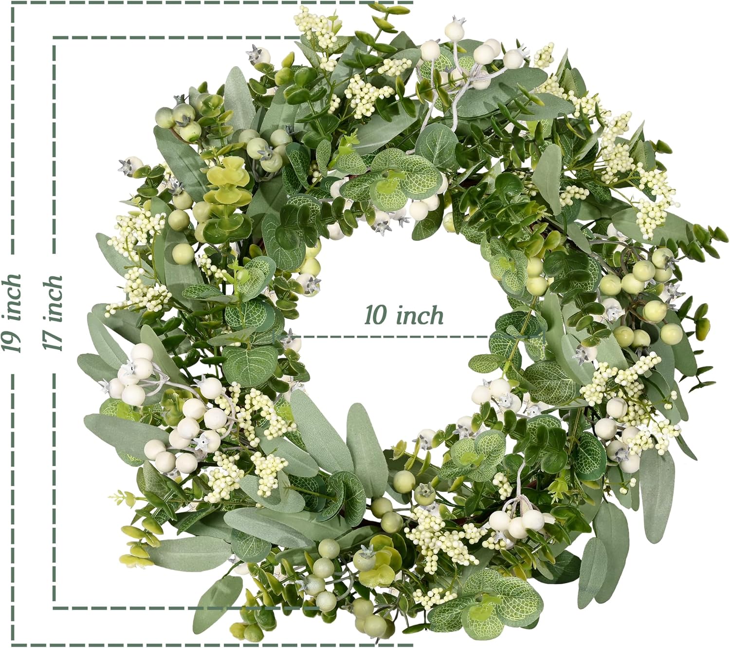 18 Inch Artificial Eucalyptus Wreath Eucalyptus Leaf/White Green Berries/Boxwood Leaf- Indoor/Outdoor